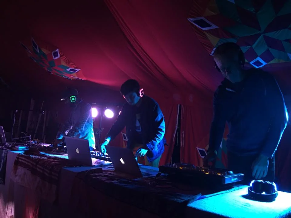 Gathered on the side of a hill, donning Secret Sound Solutions's silent rave wireless headphones, the participants were lead by the talented artists of Digital Shamans, through a sensory masterpiece.